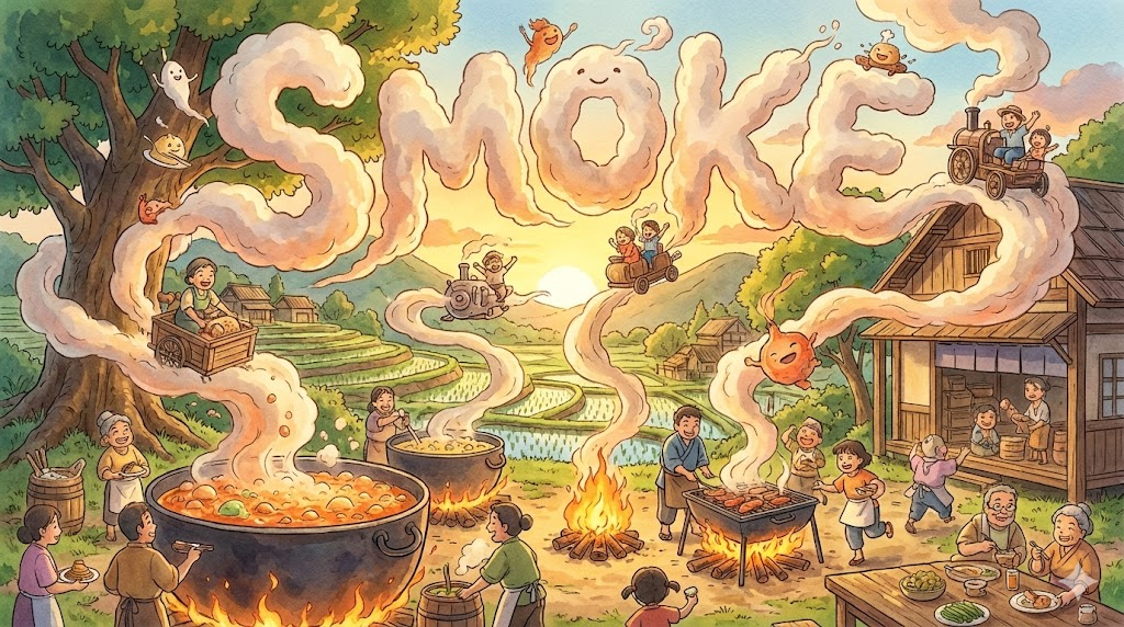 | 종합 뉘앙스 | (1) 불이 탈 때 발생하는 눈에 보이는 기체. (2) 그 연기를 들이마시는 흡연 행위. (3) 연기로 음식을 익히는 요리법. | '연기 및 흡연/훈제' |