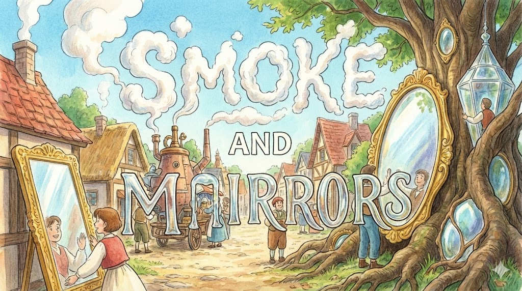 - The magician used smoke and mirrors to trick the audience. (마술사는 관객을 속이기 위해 눈속임을 사용했다.)