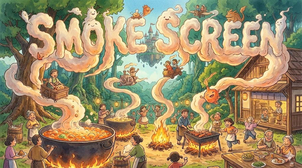 군사 작전에서 적의 시야를 가리기 위해 피우는 짙은 연기를 의미합니다. 비유적으로는 자신의 진짜 의도나 행동을 숨기기 위해 사용하는 기만적인 말이나 행동, 혹은 주의를 딴 데로 돌리기 위한 수단을 뜻합니다.