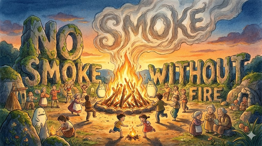 - no smoke without fire는 현상(result) 에는 반드시 원인(cause) 이 존재한다는 인과론적 사고를 나타냅니다. 지문은 소문이나 징후가 단순한 우연이 아니라 실체적 진실을 내포하고 있을 가능성을 추론하는 과정을 다룹니다.