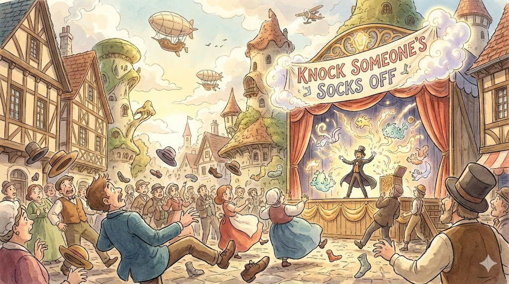 - 예문: The special effects in the movie will knock your socks off. (그 영화의 특수 효과는 너를 깜짝 놀라게 할 것이다.)