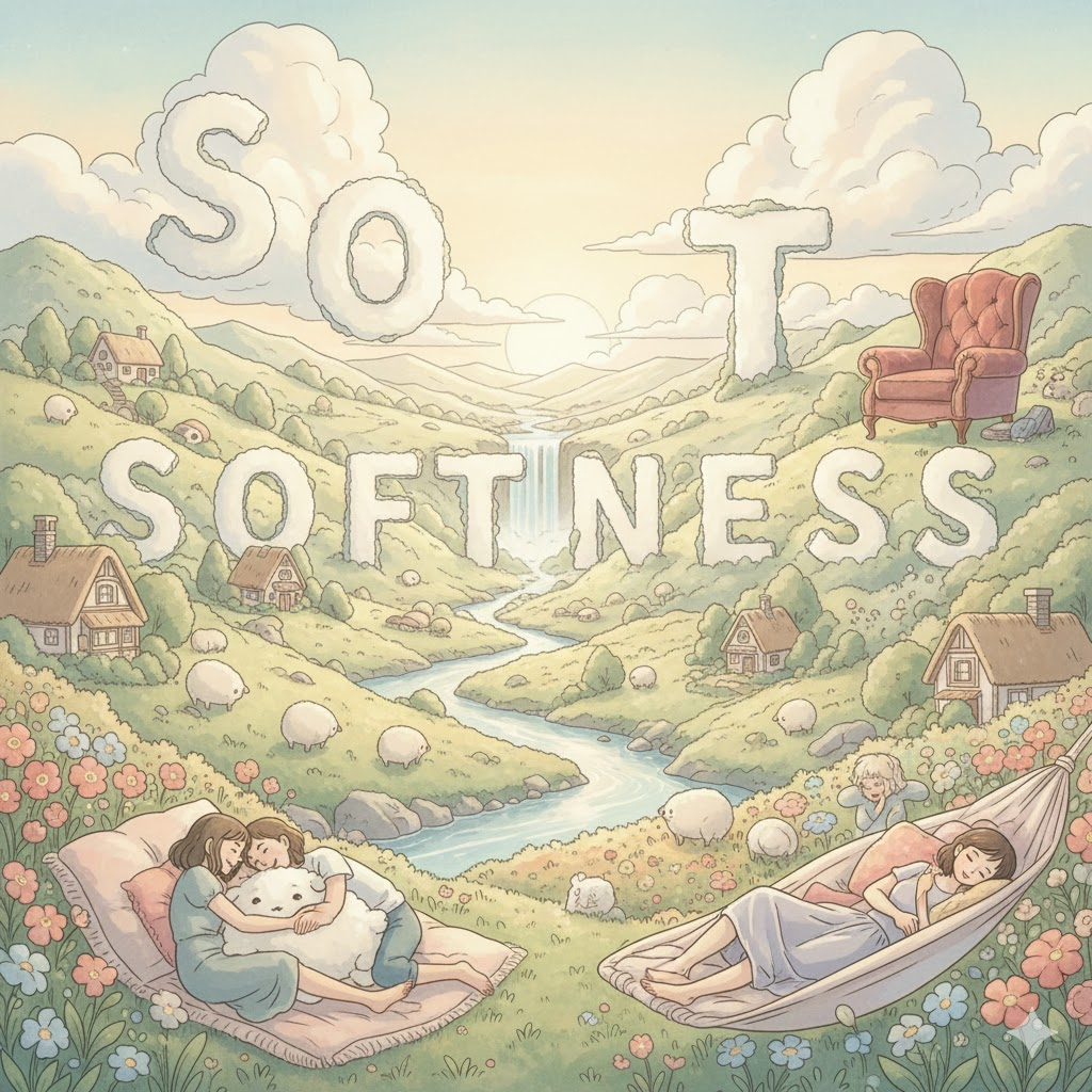 | 고대 영어 softness (부드러움, 안락함) | "거칠거나 강하지 않은 상태" | (촉각) 푹신함/매끄러움 -> (성격) 온화함/유약함 -> (빛/소리) 은은함 |