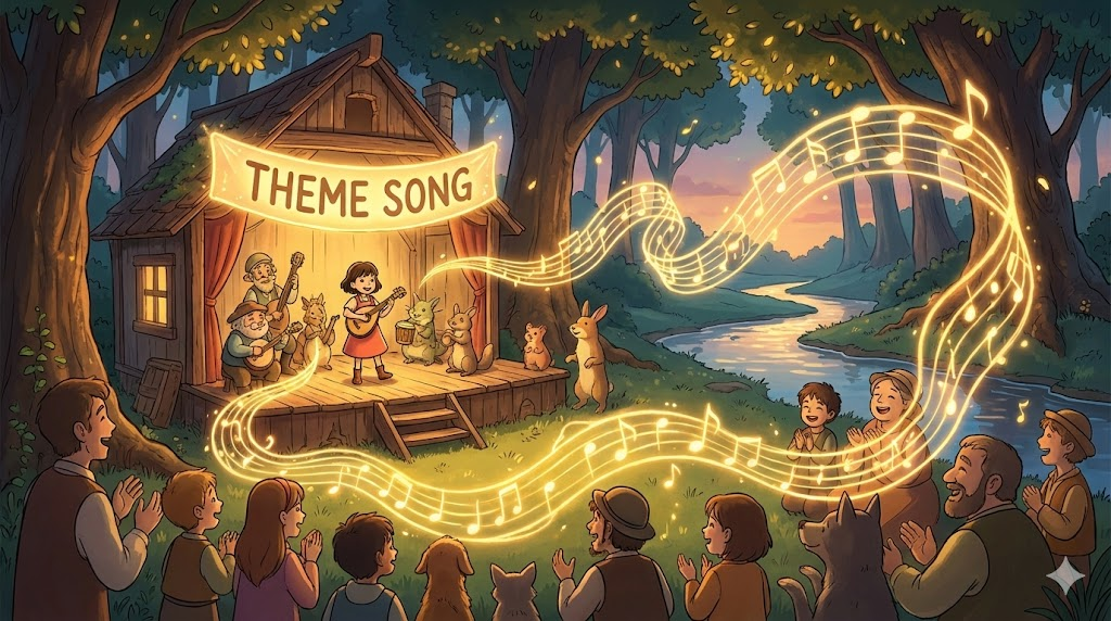 - 해석: 영화, 방송 프로그램, 또는 특정 인물을 상징하거나 대표하는 노래.