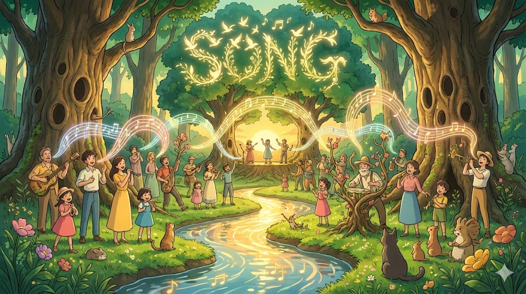 | 고대 영어 sang (노래하는 행위/결과) | "목소리로 낸 음악" | 노래/가곡 → (새의) 지저귐 → (시적인) 시/운문 |