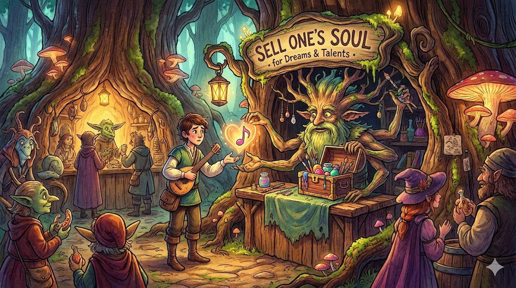 돈, 권력, 성공 등을 얻기 위해 자신의 도덕적 가치나 원칙, 혹은 진정성을 포기하는 행위를 의미합니다. 악마에게 영혼을 판다는 파우스트의 거래에서 유래한 표현입니다.