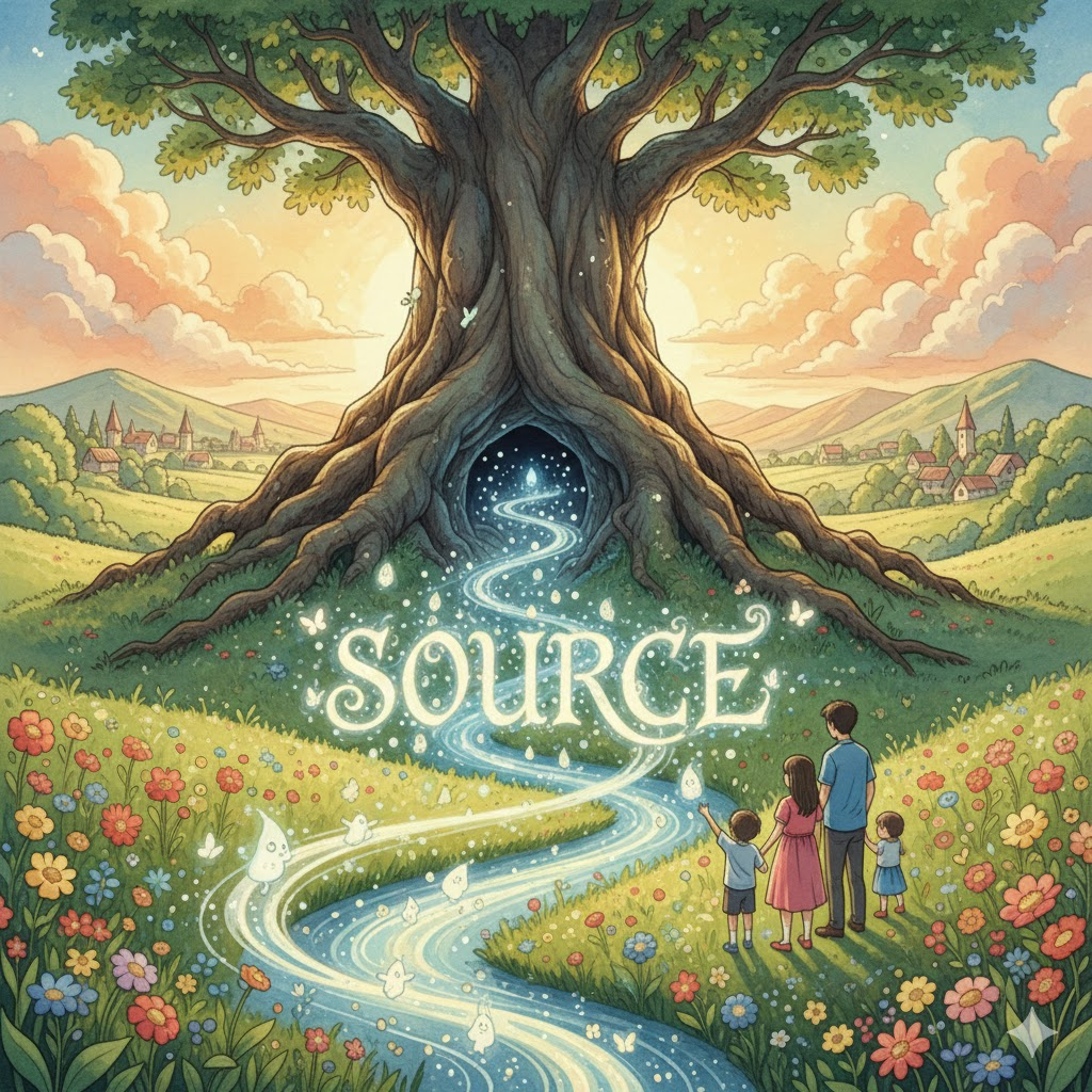 | 종합 뉘앙스 | (1) 강이나 물줄기가 시작되는 샘. (2) 정보, 돈, 에너지 등이 나오거나 얻어지는 기원. | '모든 흐름의 시작점' |