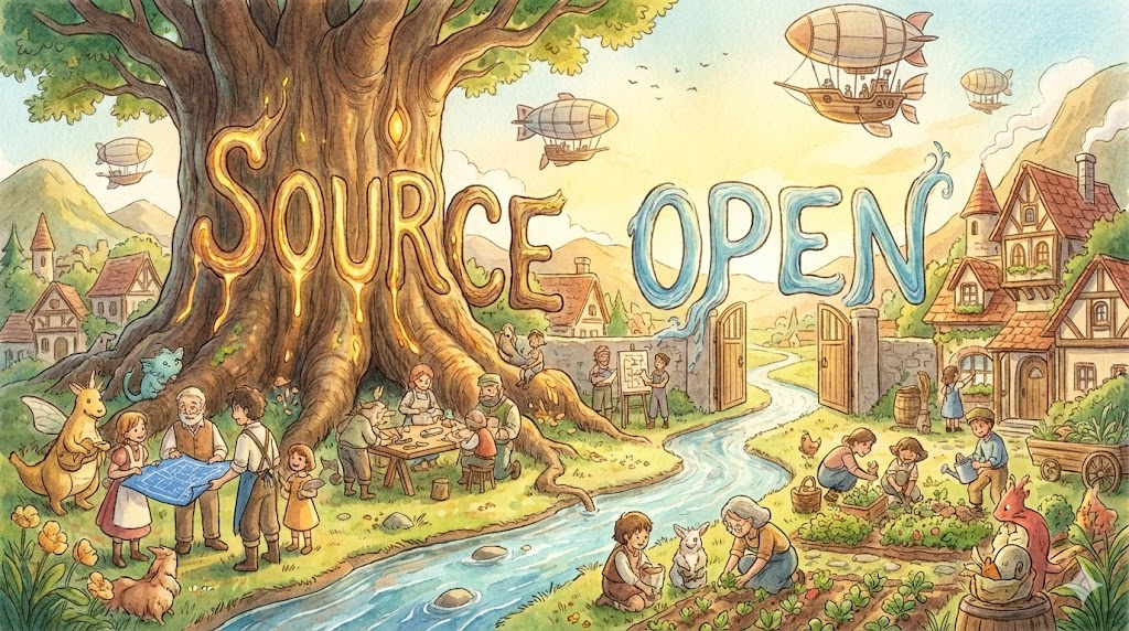 소프트웨어의 설계도인 소스 코드가 대중에게 공개되어 누구나 자유롭게 확인, 수정, 배포할 수 있는 방식을 의미합니다. 독점적인(proprietary) 소프트웨어와 반대되는 개념으로, 개방성과 협력을 강조하는 개발 모델입니다.