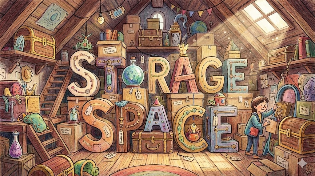 (명사) 수납공간, 저장 공간 (컴퓨터/물리적)