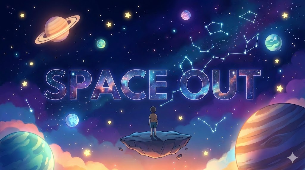 (명사) 공간, 우주, 여유 / (동사) 간격을 두다, 멍해지다 / (숙어) 개인 공간, 빈 공간, 멍하니 있다, 숨 쉴 틈