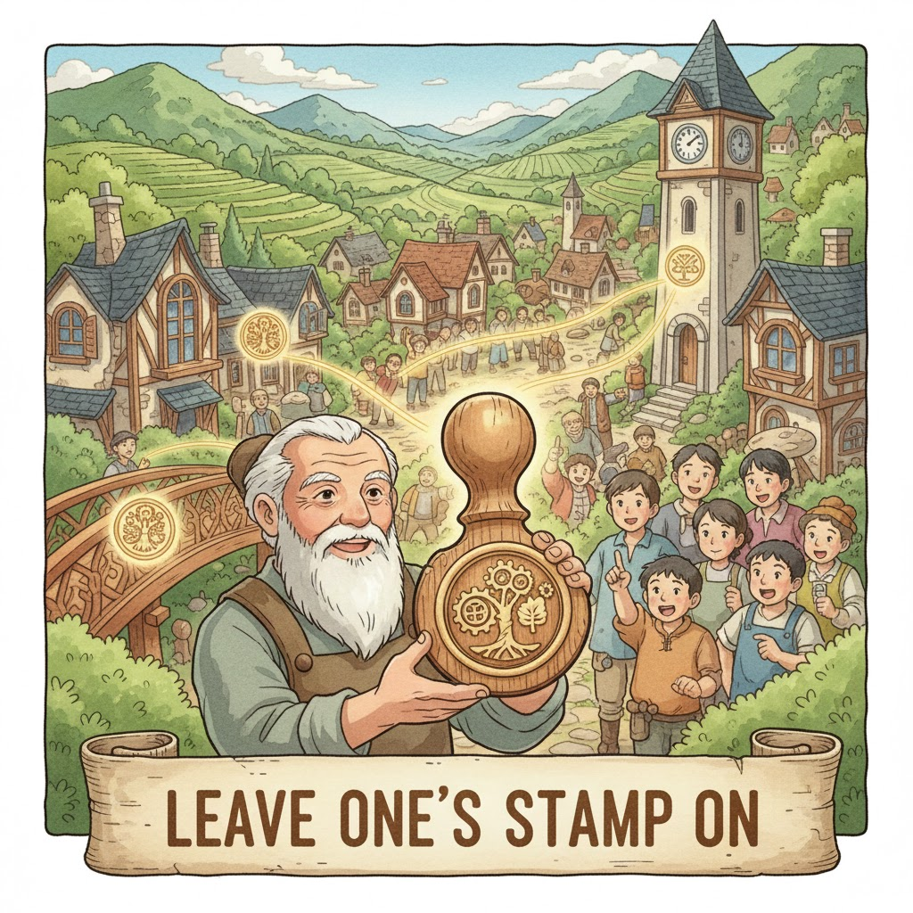 - leave one's stamp on은 예술가나 리더가 자신의 **고유성(originality)**과 비전을 통해 세상에 **지속적인 영향(legacy)**을 미치는 것을 비유적으로 표현합니다.