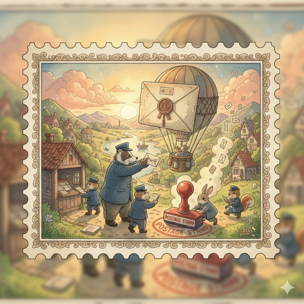 - 해석: 우편 요금 지불을 증명하기 위해 편지 봉투에 붙이는 작은 종이.