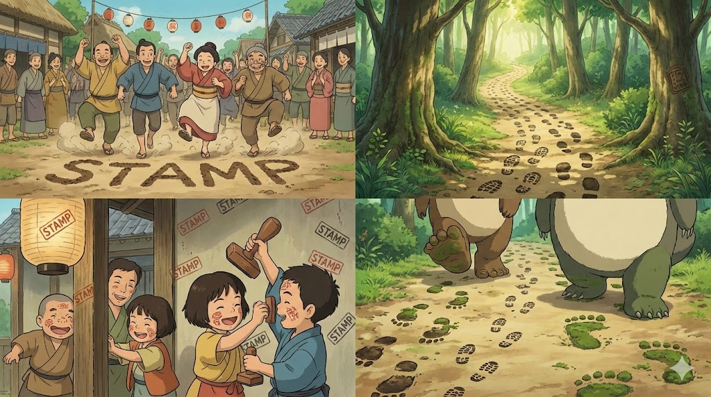 | 종합 뉘앙스 | (1) 강한 힘으로 내려치는 행위(발 구르기). (2) 그 힘을 이용해 자국을 남기는 행위(도장 찍기). (3) 그 결과물인 표식(우표). | '타격과 자국' |