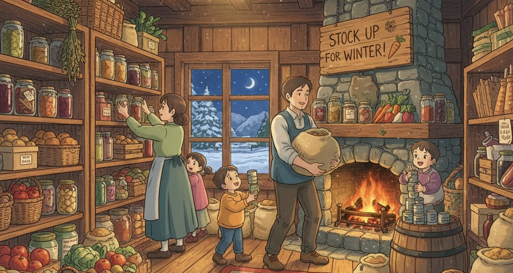 나중에 필요할 것을 대비하여 물건을 대량으로 구매하여 저장해 두는 것을 의미합니다. 세일 기간이나 비상 상황을 대비할 때 주로 사용됩니다.