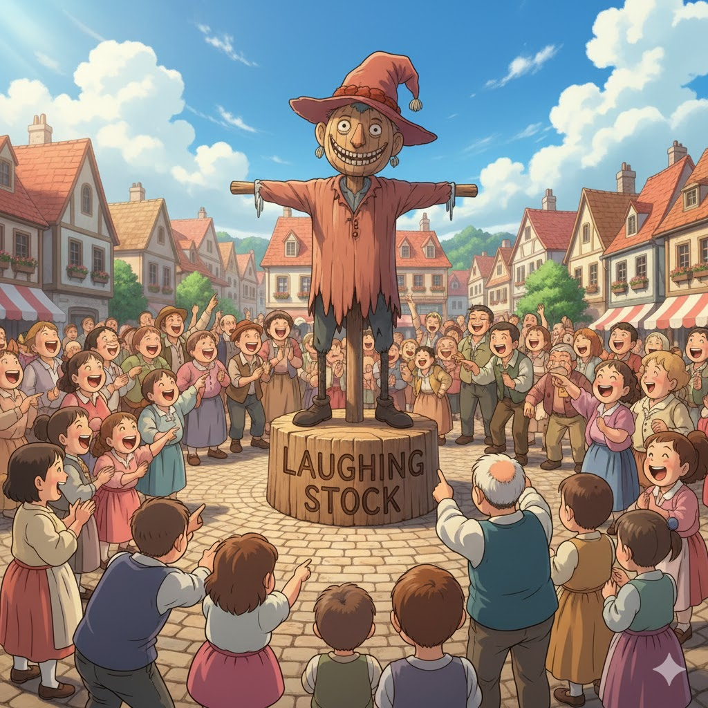 - 해석: 어리석은 행동이나 실수로 인해 남들의 조롱이나 비웃음을 사는 사람 또는 대상.