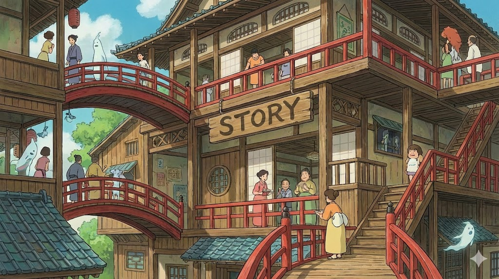 | 종합 뉘앙스 | (1) 사건의 흐름을 일정한 줄거리로 엮은 것(사실 또는 허구). (2) 건물의 높이를 나누는 수평적 구획(층). | '서사 또는 건물의 층' |