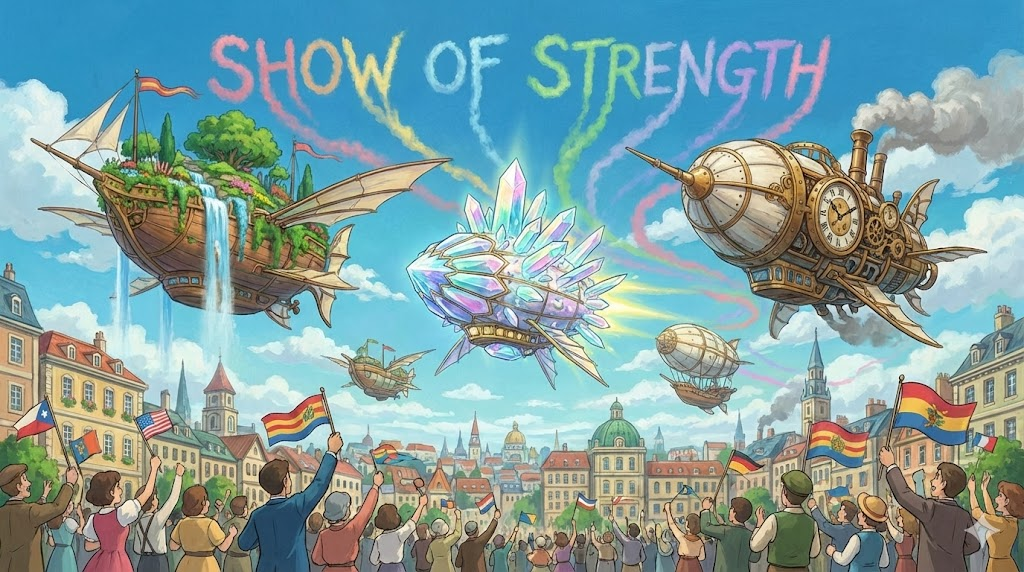상대방에게 자신의 힘이나 능력을 보여주어 위협하거나 경고하기 위해 공개적으로 행하는 행동을 의미합니다. 주로 군사적 훈련이나 정치적 집회 등에서 사용됩니다.