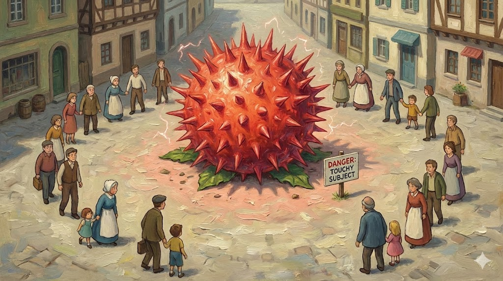 - 해석: 사람들이 화내거나 기분 나빠할 수 있어 언급하기 조심스러운 주제.