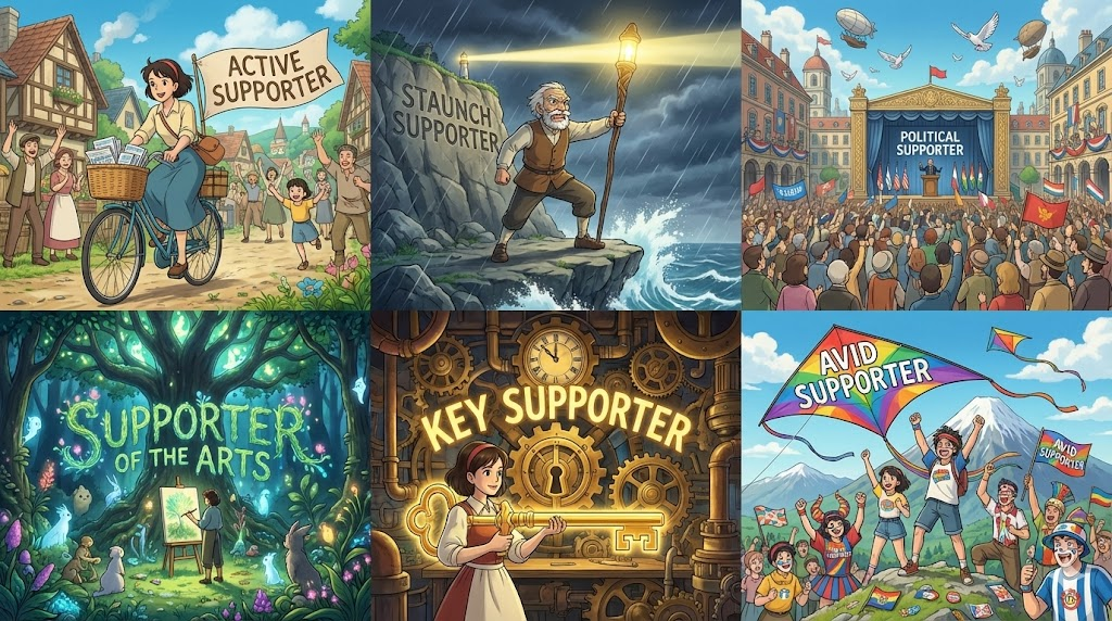 'supporter'는 정치적 입장, 사회적 기여, 그리고 집단행동의 역학을 다루는 정치, 사회, 문화 지문에서 핵심적으로 활용됩니다.