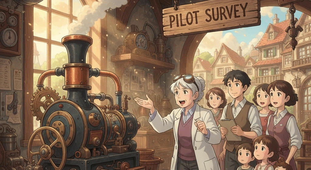본격적인 대규모 조사를 시작하기 전에, 설문 문항의 적절성이나 조사 방법의 문제점을 미리 파악하고 수정하기 위해 소규모로 먼저 실시해보는 시험 조사를 의미합니다.