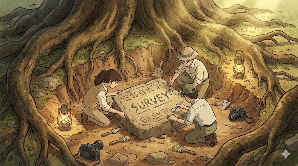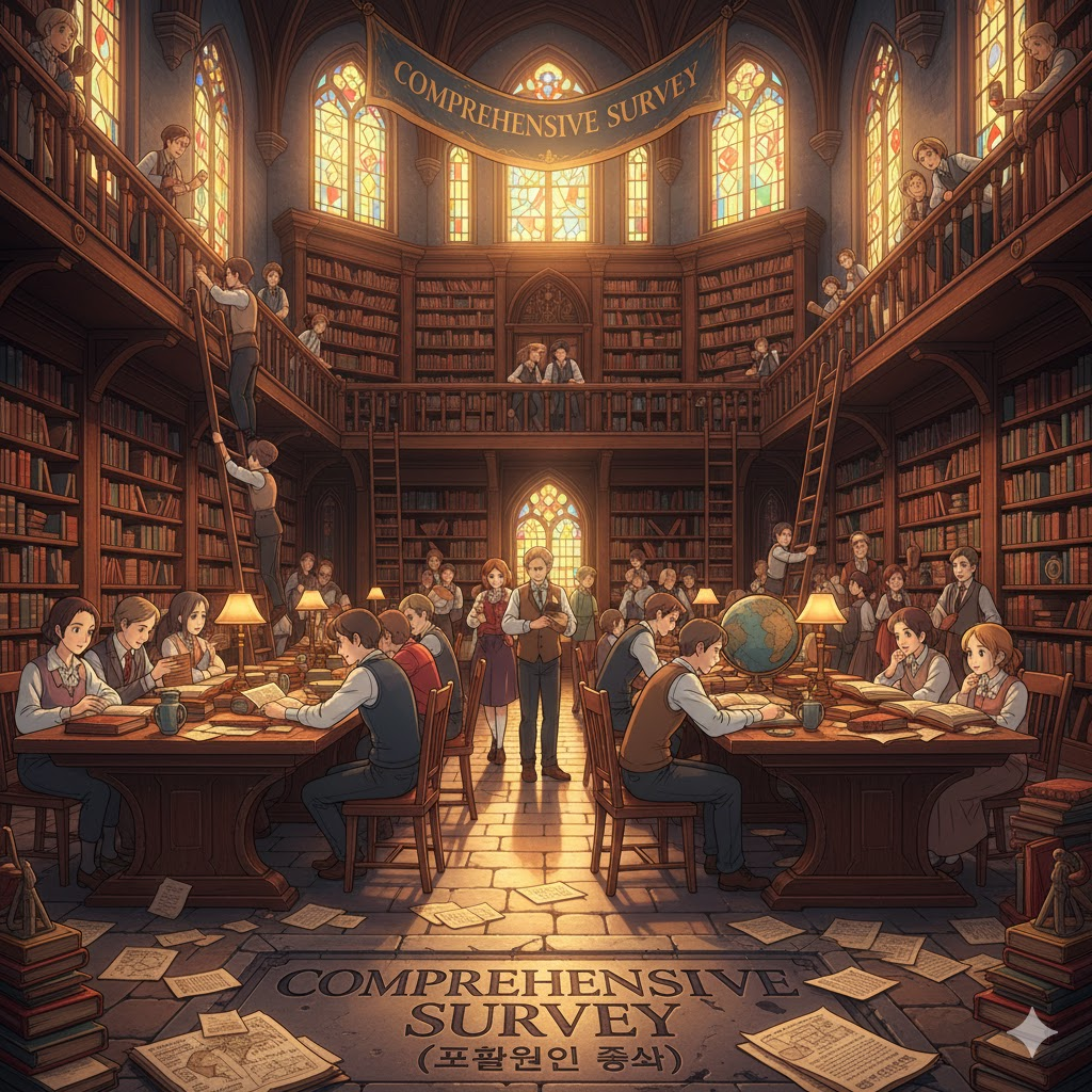 - 해석: 특정 주제에 대해 빠진 것 없이 넓은 범위를 다루는 상세한 조사.