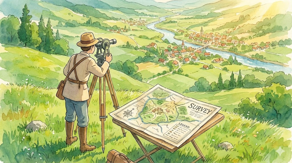- 해석: 토지의 경계, 면적, 높이 등을 정밀하게 측정하여 지도를 만드는 작업. (지리, 건설 지문에서 중요)