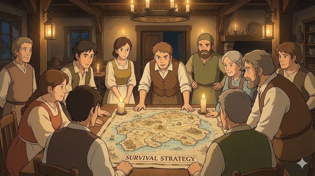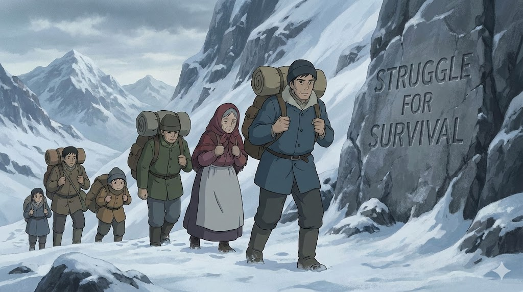 - 해석: 제한된 자원이나 가혹한 환경 속에서 살아남기 위해 겪는 어려움과 노력.