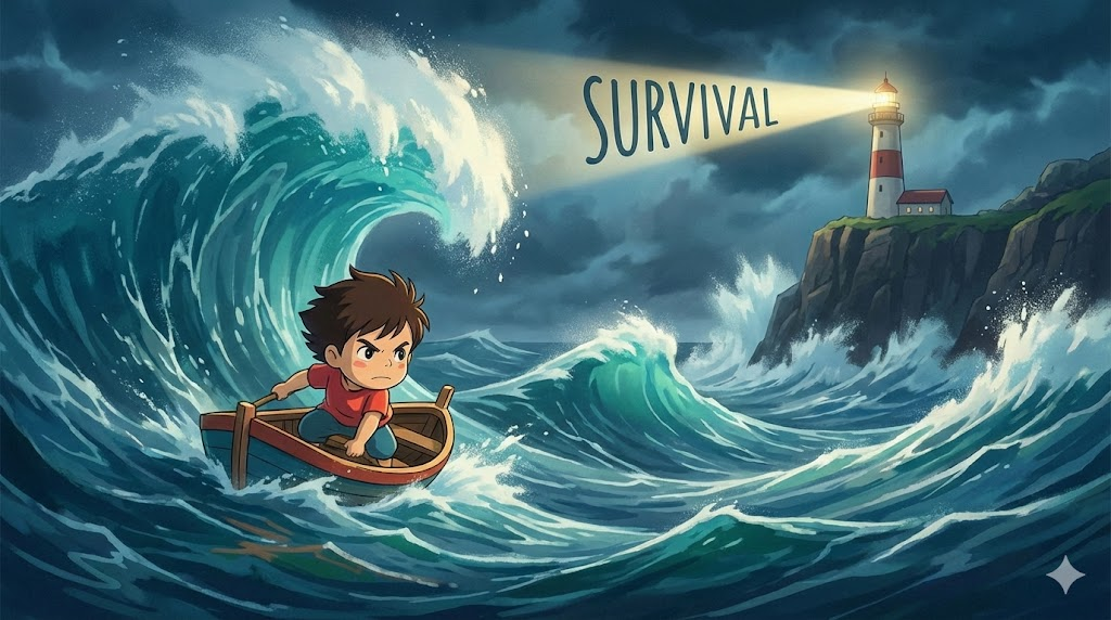 극한의 스트레스나 위기 상황에서 장기적인 계획이나 성장보다는, 당장 눈앞의 생존과 안전을 확보하는 것에만 모든 에너지를 집중하는 심리적, 물리적 상태를 의미합니다.