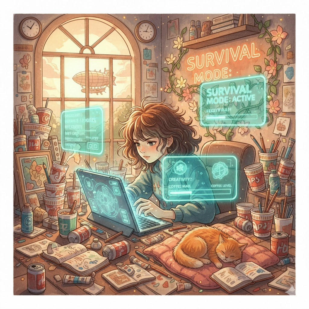 (명사) 생존 모드 (살아남기에 급급한 상태)