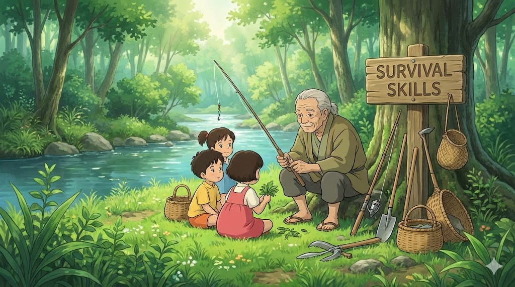 - 해석: 야생이나 극한 환경에서 살아남기 위해 필요한 지식과 능력 (예: 불 피우기, 물 찾기).