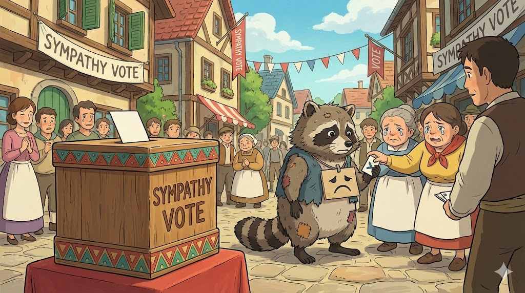 선거, 오디션, 경쟁 등에서 후보자의 능력이나 정책보다는, 그가 겪은 불행, 질병, 또는 부당한 대우 때문에 유권자나 심사위원들이 안타까움을 느껴서 던지는 표를 의미합니다.