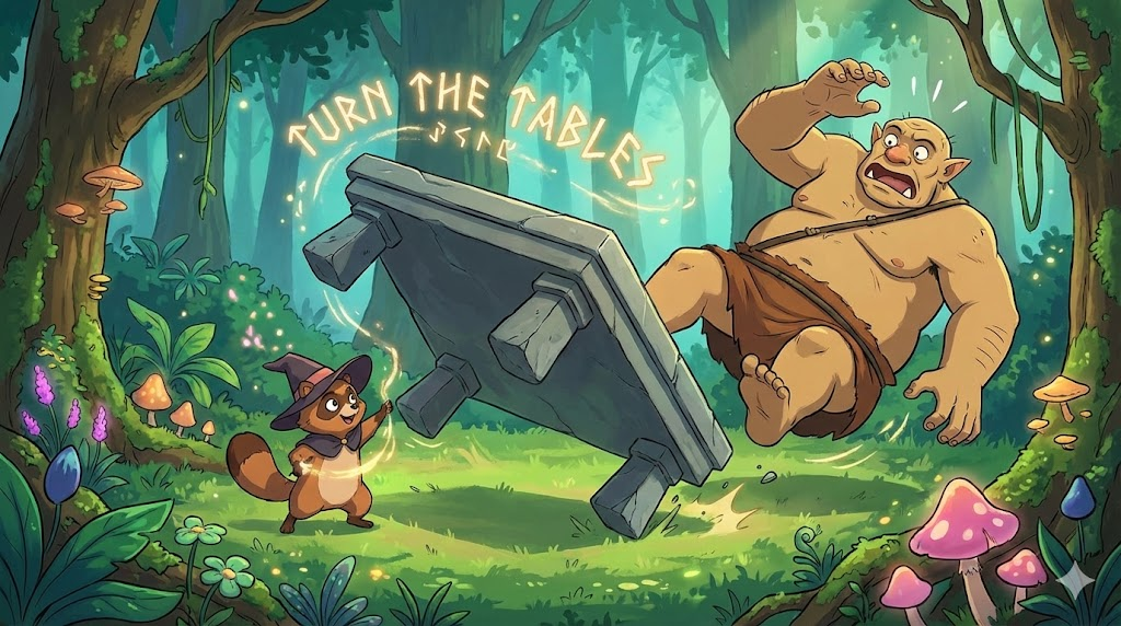 게임이나 경쟁에서 불리하던 상황을 유리하게 바꾸거나, 승패의 위치를 완전히 뒤바꾸는 것을 의미합니다. 보드게임을 할 때 판을 돌려 서로의 위치를 바꾸는 것에서 유래했습니다.