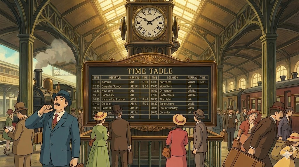 - 해석: 기차, 버스 등의 운행 시간이나 학교 수업, 계획의 일정을 정리한 표.