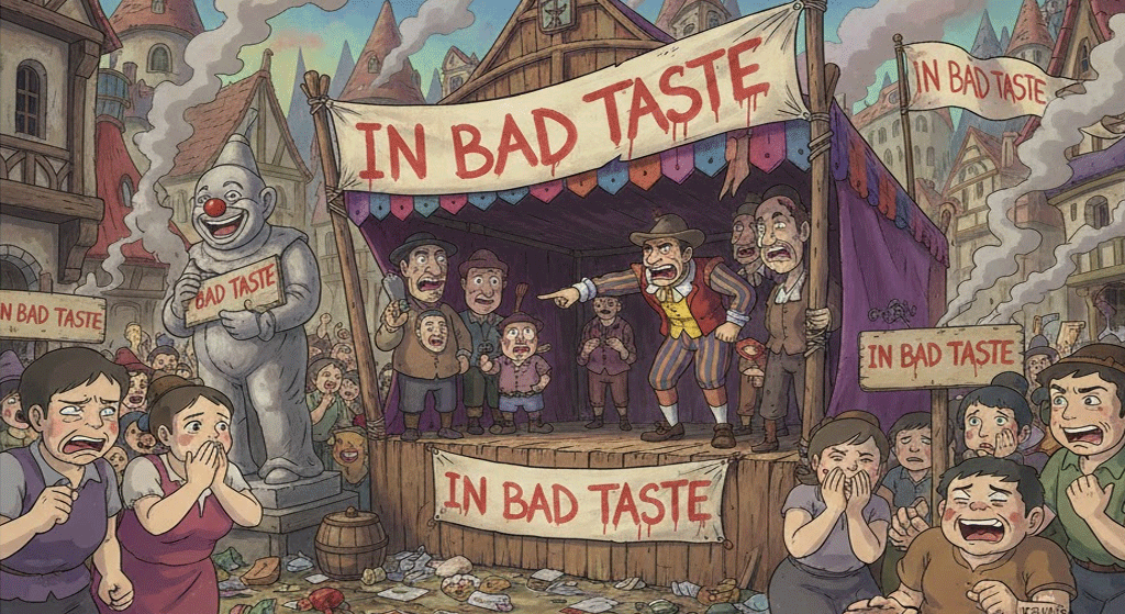 - 예문: Making jokes about the tragedy was considered to be in bad taste. (그 비극에 대해 농담을 하는 것은 부적절한 것/저속한 것으로 간주되었다.)