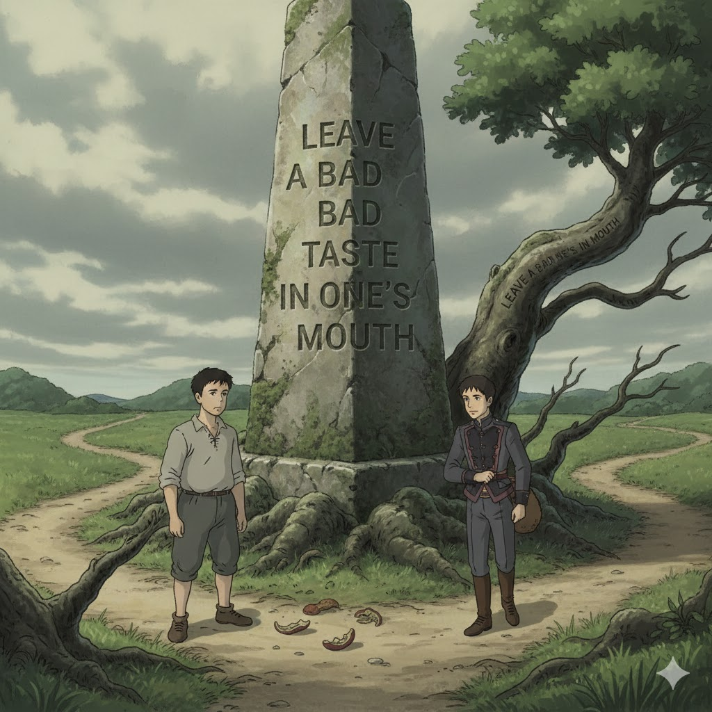 - 예문: The unfair way the negotiation ended left a bad taste in my mouth. (협상이 불공정하게 끝난 방식은 내게 씁쓸한 뒷맛을 남겼다.)