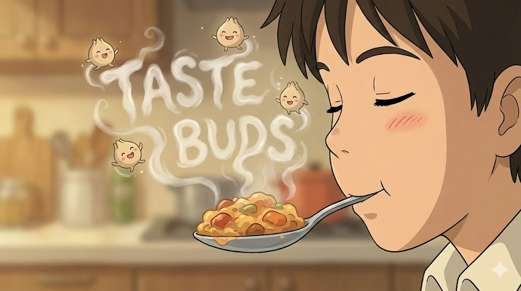 - The chef creates dishes that delight the taste buds. (그 셰프는 미각을 즐겁게 하는 요리를 만든다.)