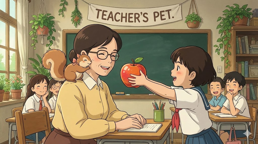 - teacher's pet은 교실 내의 편애(favoritism) 와 또래 집단 간의 갈등(conflict) 을 설명하는 소재입니다. 교사의 공정성(fairness) 이 학생들의 사기(morale) 와 사회성 발달에 미치는 영향을 논할 때 사용됩니다.