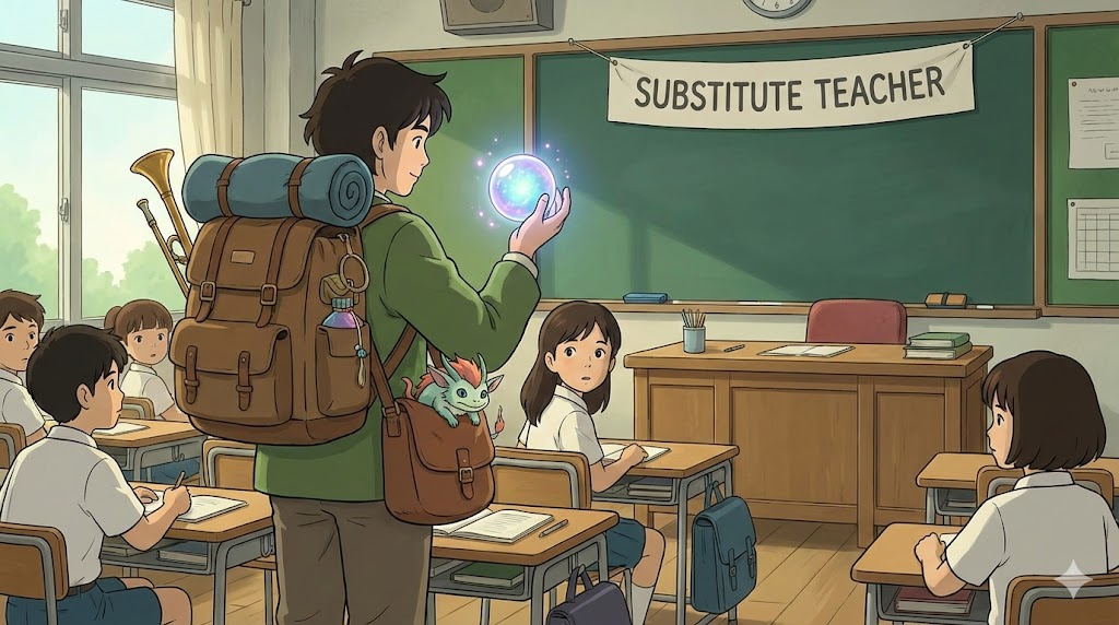 - 해석: 정규 교사가 부재중일 때 일시적으로 수업을 대신하는 교사.