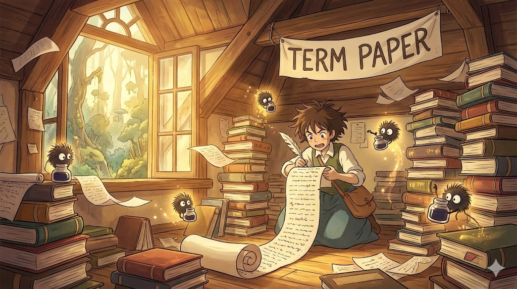 학교나 대학에서 한 학기(term) 동안 배운 내용을 종합하여 학기 말에 제출하는 긴 과제물이나 논문을 의미합니다. 성적 평가에 큰 비중을 차지합니다.