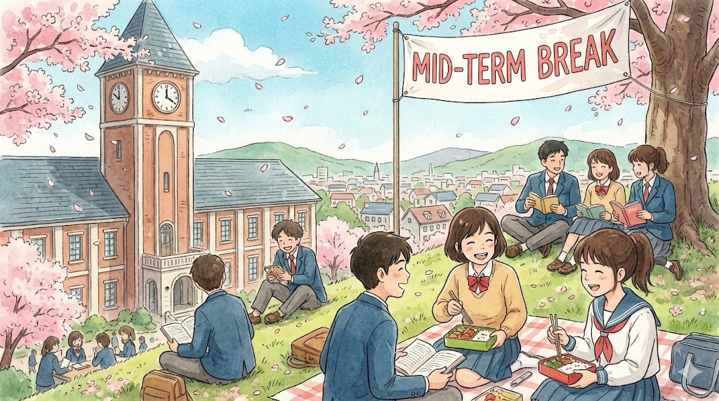 - 해석: 기간의 중간에 해당하는, 또는 학교에서의 중간 고사.