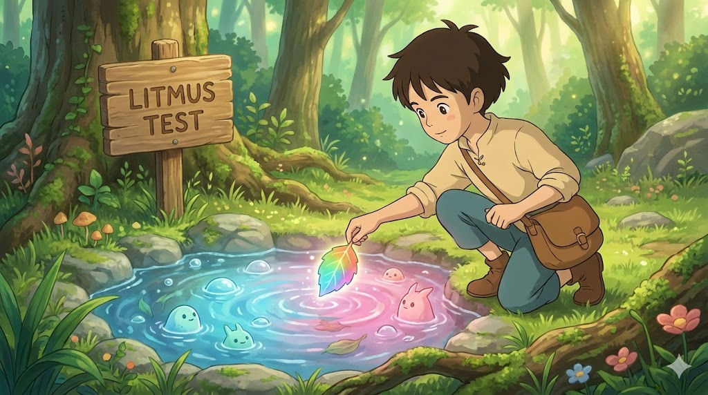 화학에서 용액의 산성/알칼리성을 판별하는 시험지에서 유래했습니다. 비유적으로는 어떤 사람의 정치적 성향, 가치관, 혹은 상황의 본질을 단번에 파악할 수 있게 해주는 명확한 판단 기준이나 지표를 의미합니다.