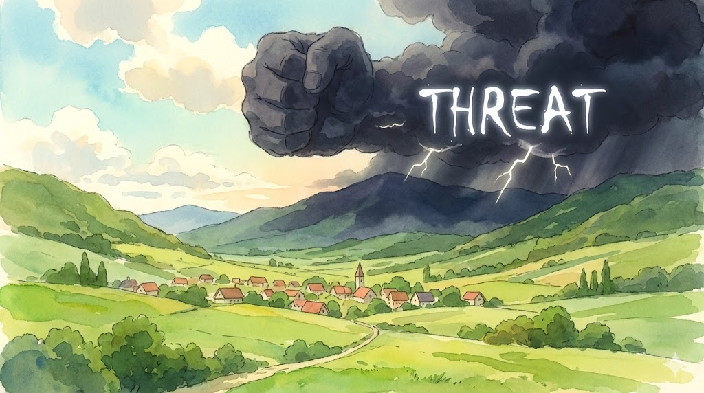 - 해석: 직접적으로 말하지 않고 암시적으로 드러내는 위협.