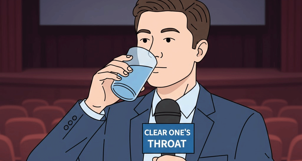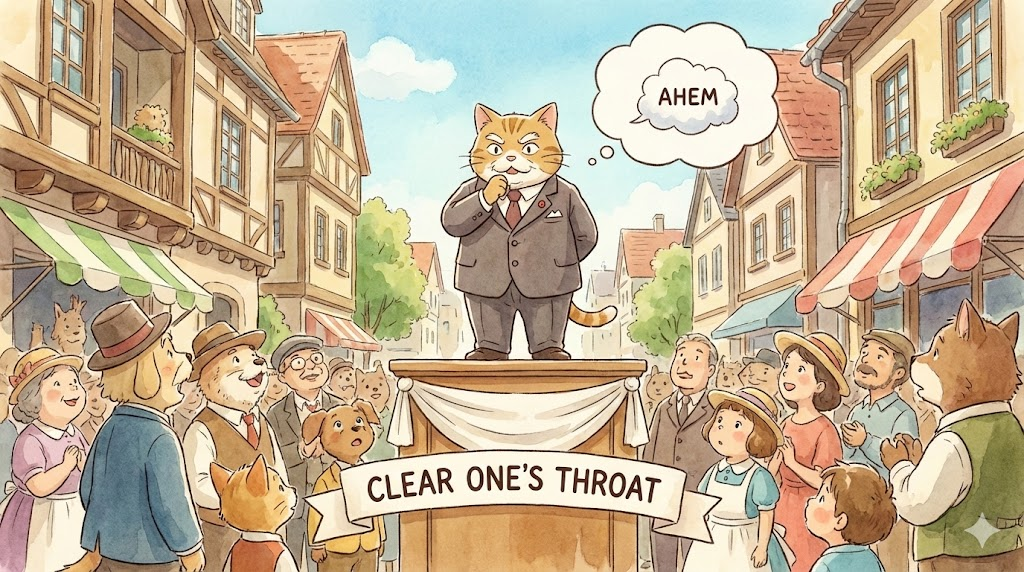 - 해석: 말을 시작하기 전에 목을 풀거나, 주의를 끌기 위해 일부러 기침 소리를 내는 행위.