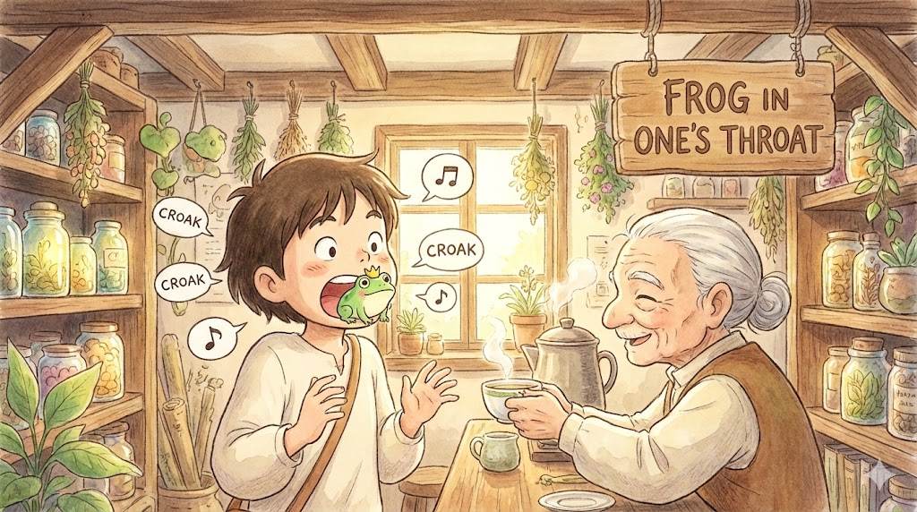 8. frog in one's throat (목이 잠기다/목소리가 잘 안 나오다)