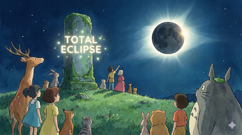 - During a total eclipse, the day turns into night. (개기 일식 동안에는, 낮이 밤으로 변한다.)