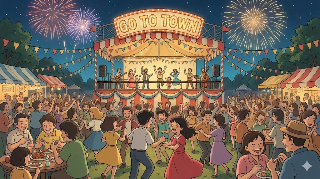 - 예문: They really went to town on the decorations for the Christmas party. (그들은 크리스마스 파티 장식을 정말 신나서/본격적으로 했다.)