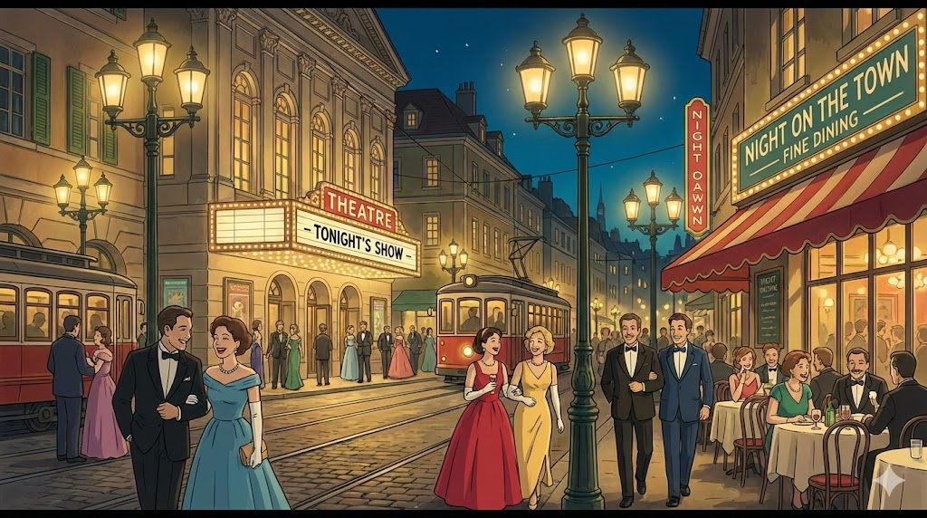 마을, 화제, 유흥. 시내 중심지, 사람들의 관심사, 열정적 행위, 그리고 부재.