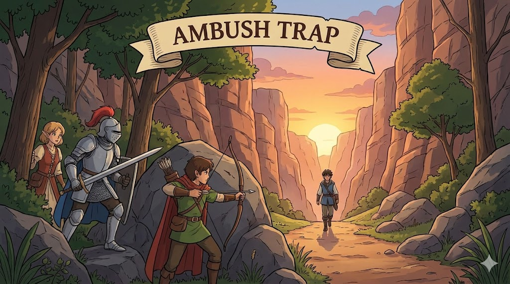 - 해석: 누군가를 잡거나 속이기 위해 계획적인 장치나 계략을 마련하는 행위.