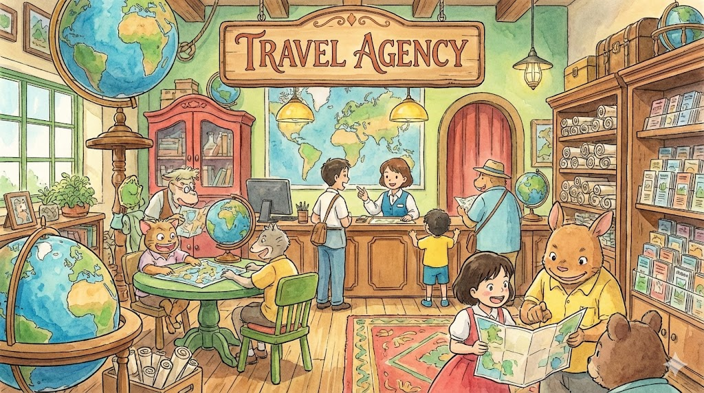 고객을 대신하여 항공편 예약, 숙소 예약, 여행자 보험, 패키지 투어 상품 등을 판매하고 여행 일정을 기획해 주는 회사나 대리점을 의미합니다.