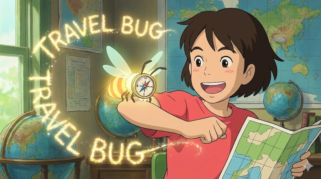 여행에 대한 강렬하고 억제할 수 없는 욕구나 흥미를 감기 바이러스(bug)에 비유하여 표현한 말입니다. 새로운 곳을 탐험하고 싶은 충동적인 마음을 나타냅니다.
