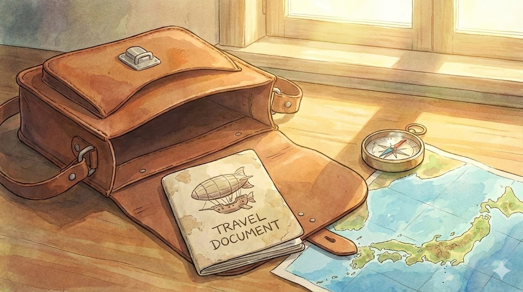 (명사) 여행 서류 (여권, 비자 등)